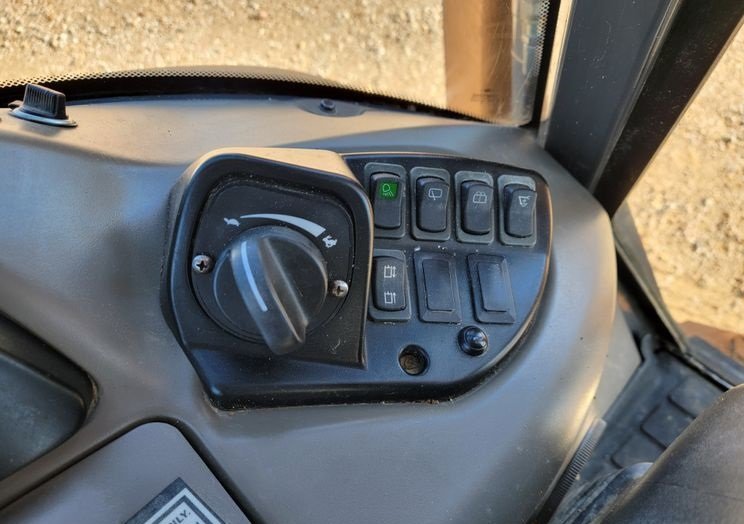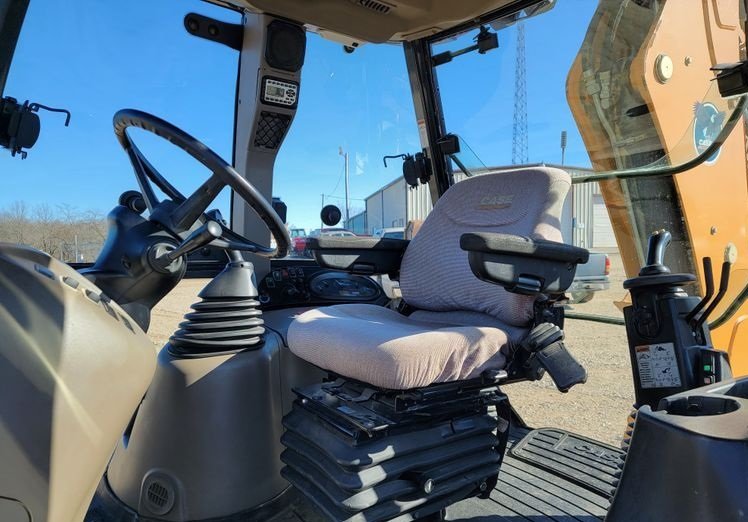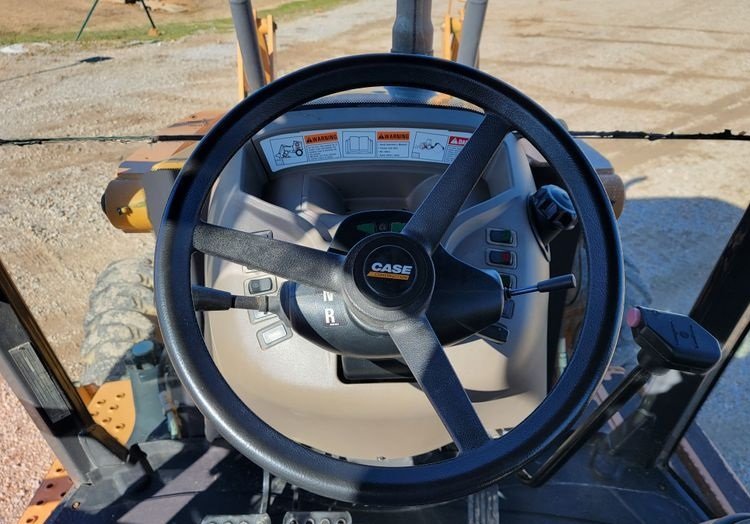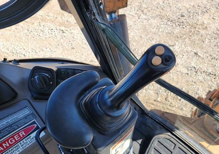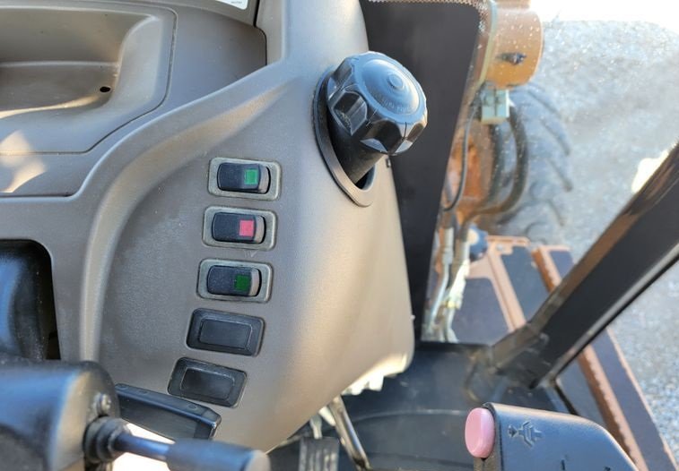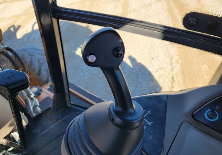The operator station includes a fully enclosed cab equipped with air conditioning and heat, ensuring comfortable operation in all weather conditions. The pilot-controlled backhoe controls provide precise and responsive handling, improving efficiency and reducing operator fatigue.