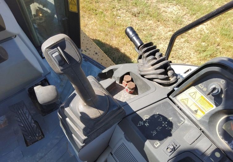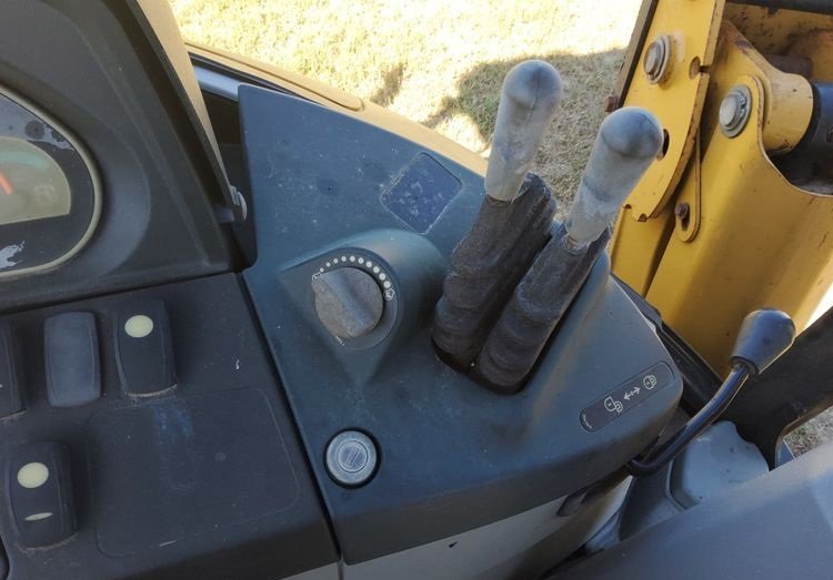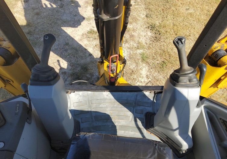 The machine is equipped with an OROPS operator platform with pilot-controlled backhoe controls and a pattern changer, allowing operators to easily switch control patterns and operate with precision and comfort.