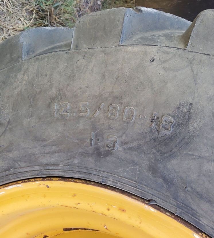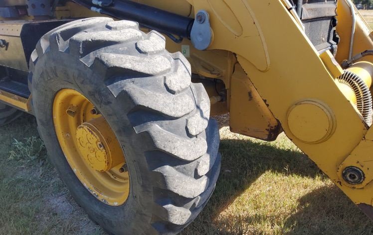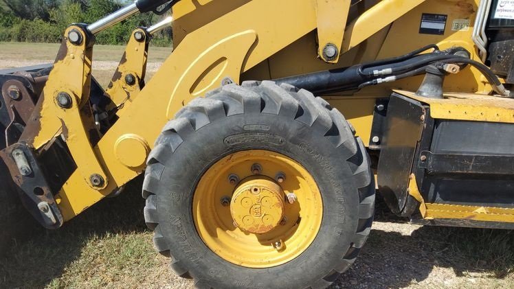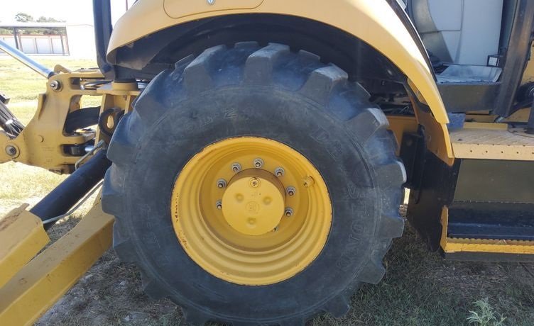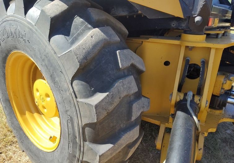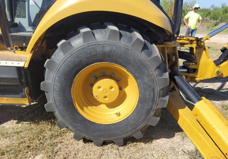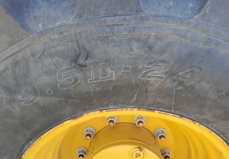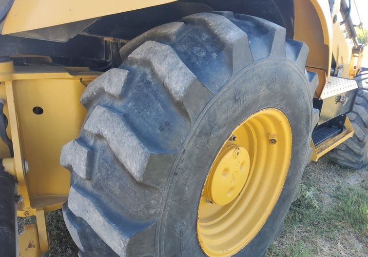 The machine rides on 12.5/80-18 front tires and 19.5L-24 rear tires, providing strong traction, durability, and stability on a variety of jobsite conditions.