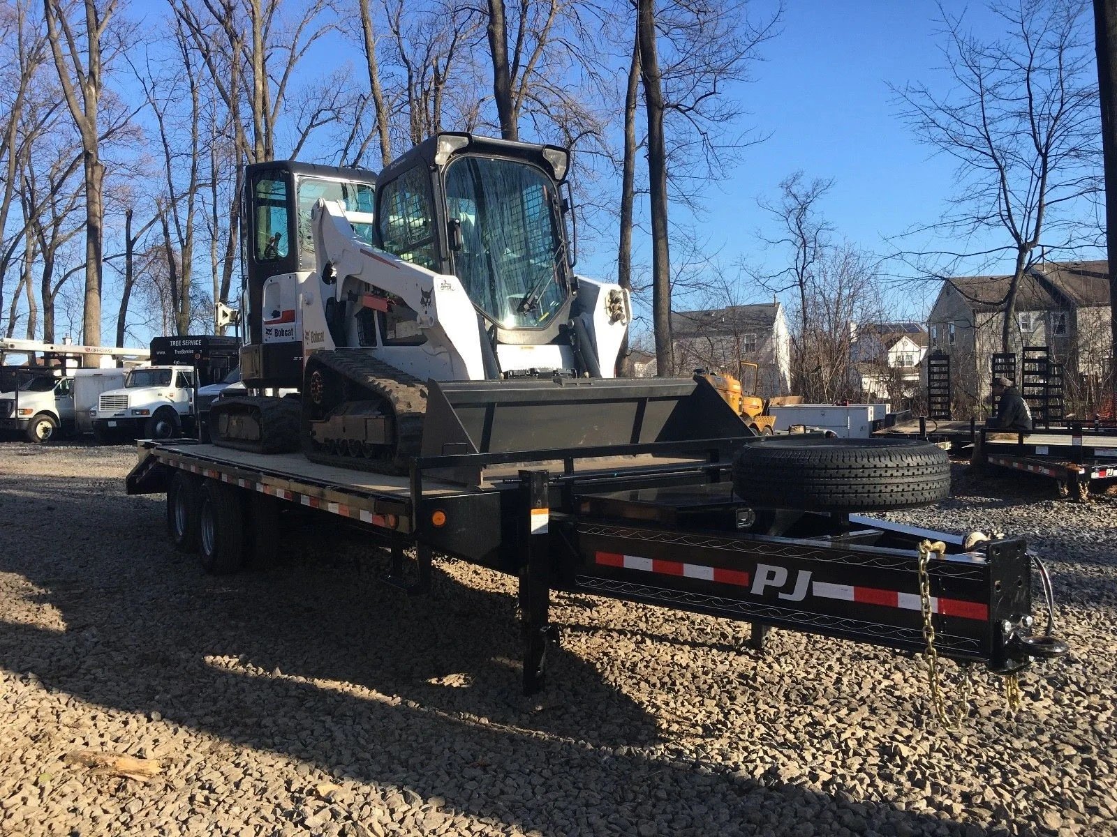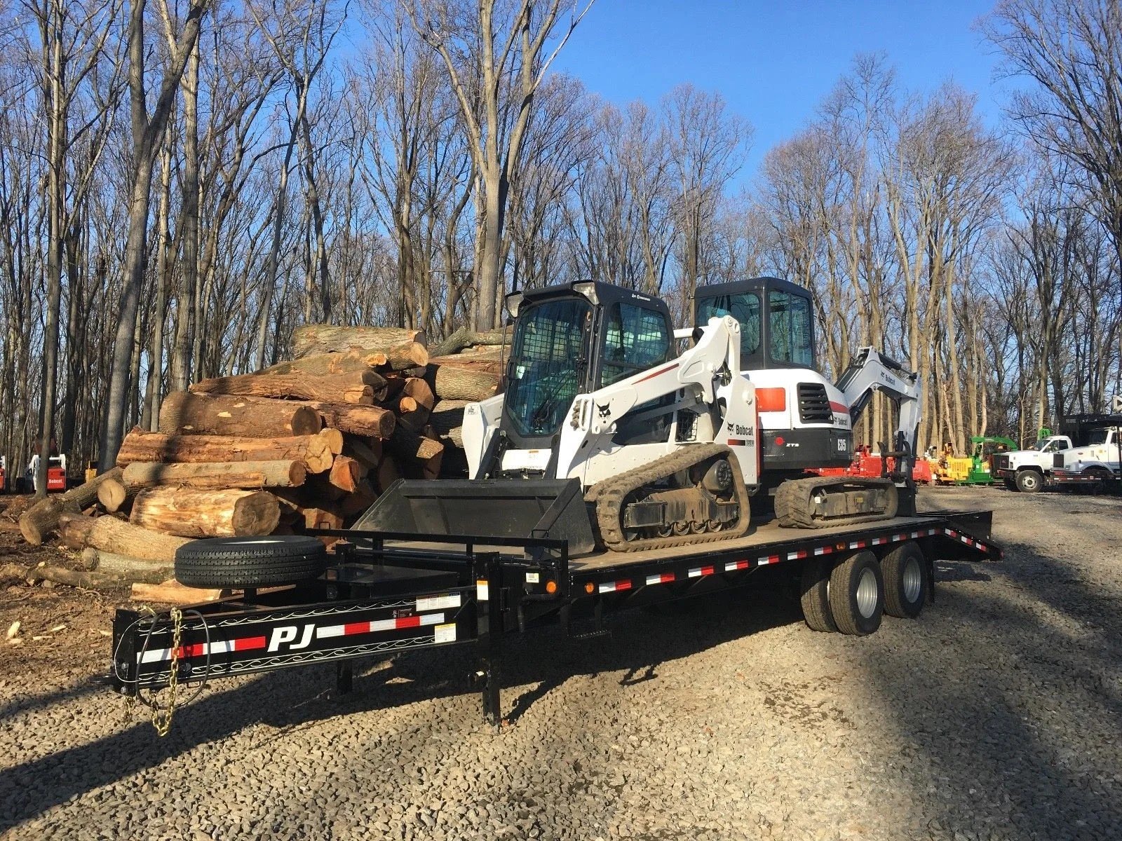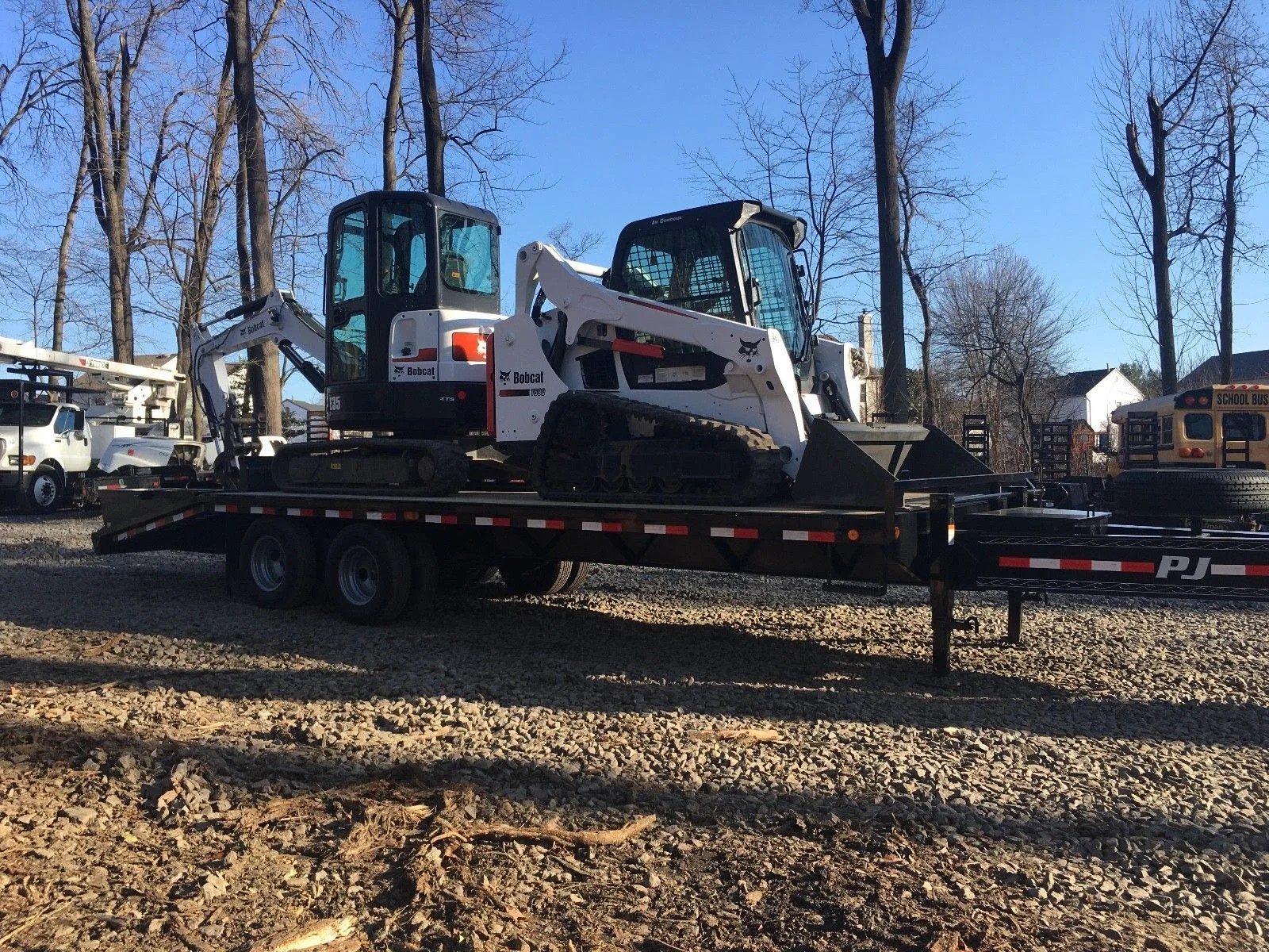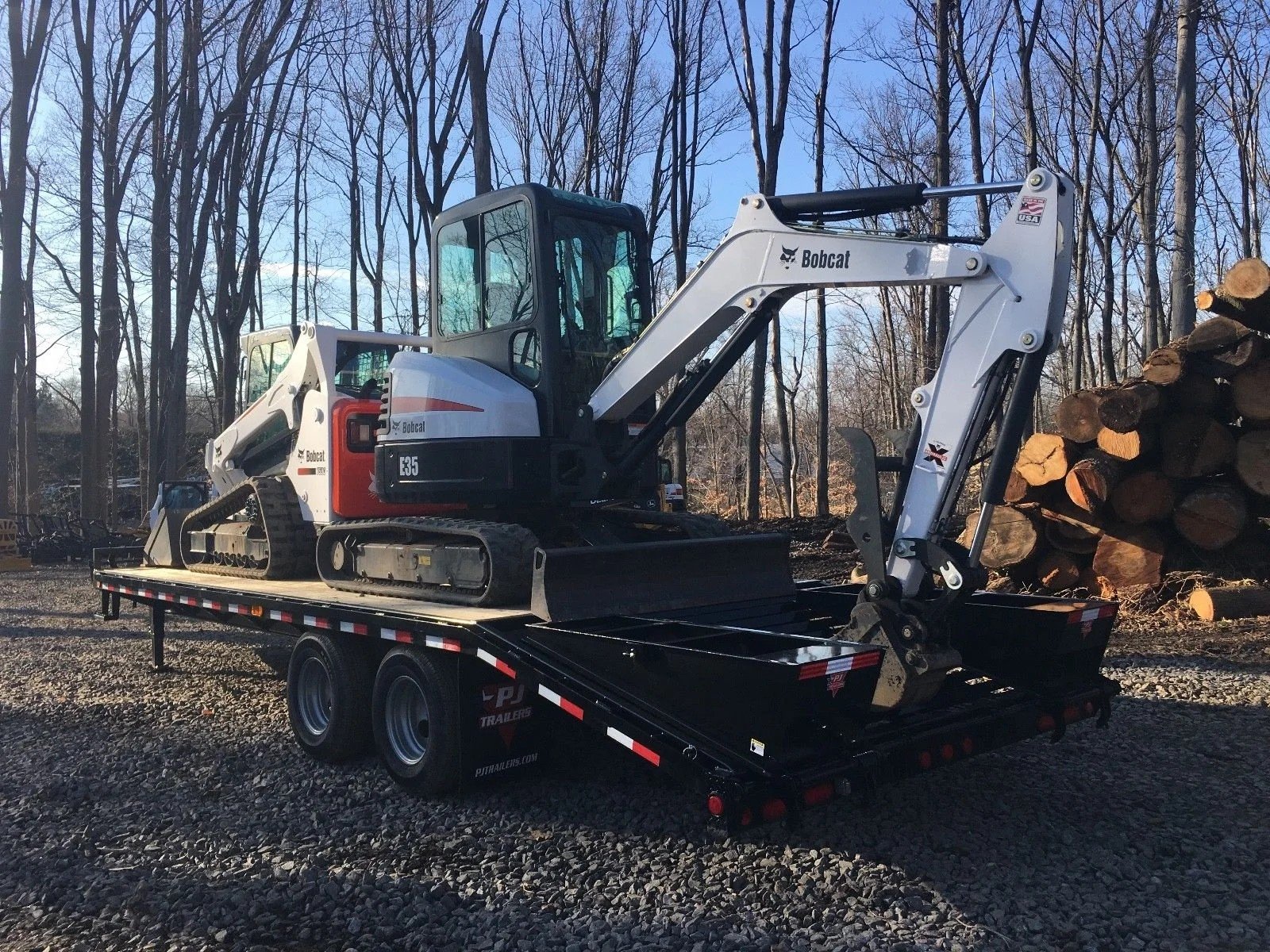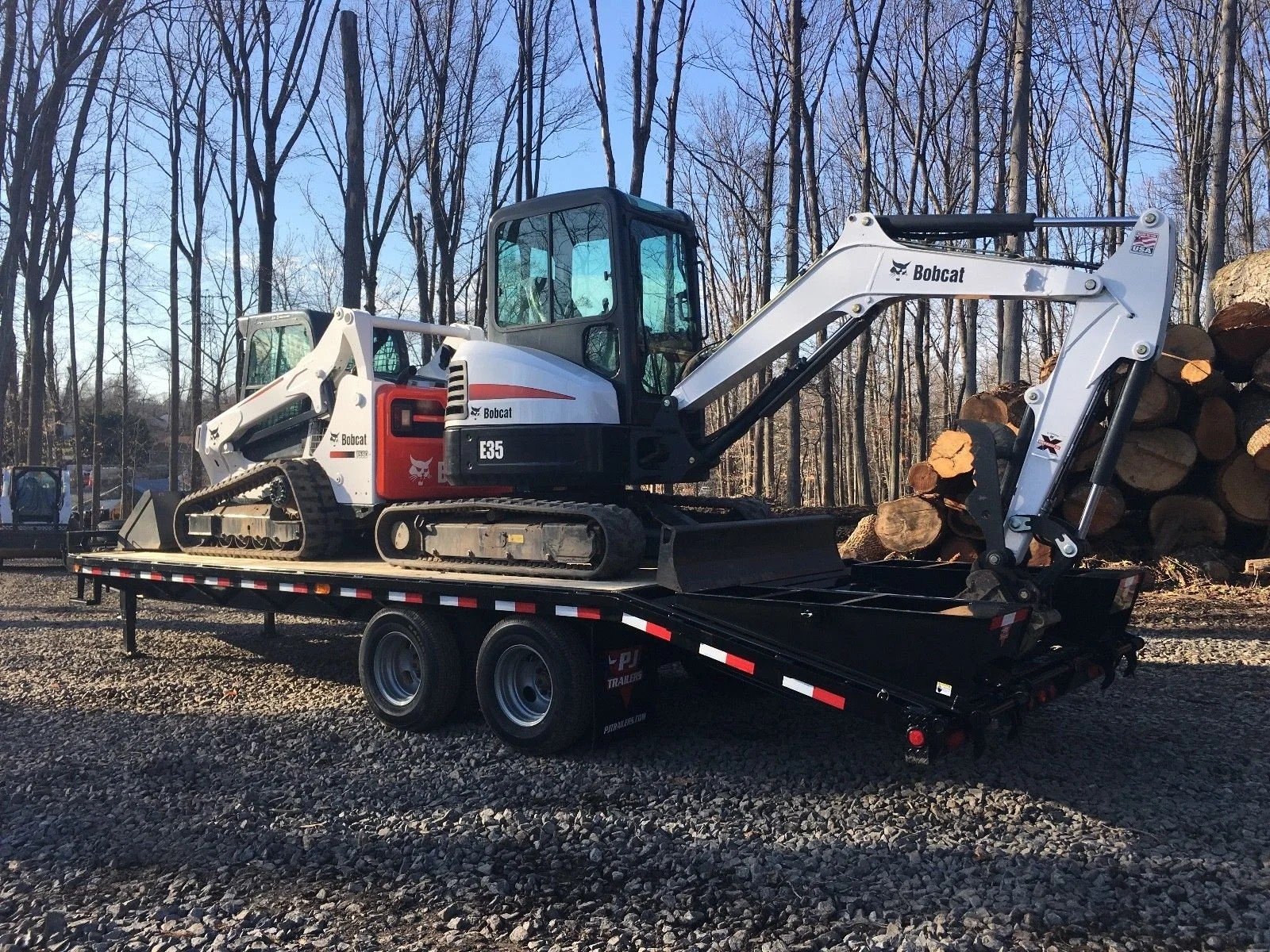 This heavy-duty trailer is built for hauling equipment with ease and safety. Rated at 23,000 lb GVW, it includes a 20′ treated wood deck with a 5′ dovetail, fold-up ramps, and dual axles with electric brakes.