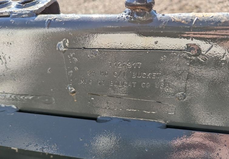 • Bobcat 84" heavy-duty bucket with bolt-on cutting edge