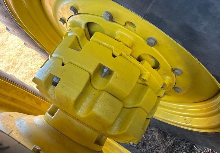The tire setup provides excellent traction, stability, and field performance under load.